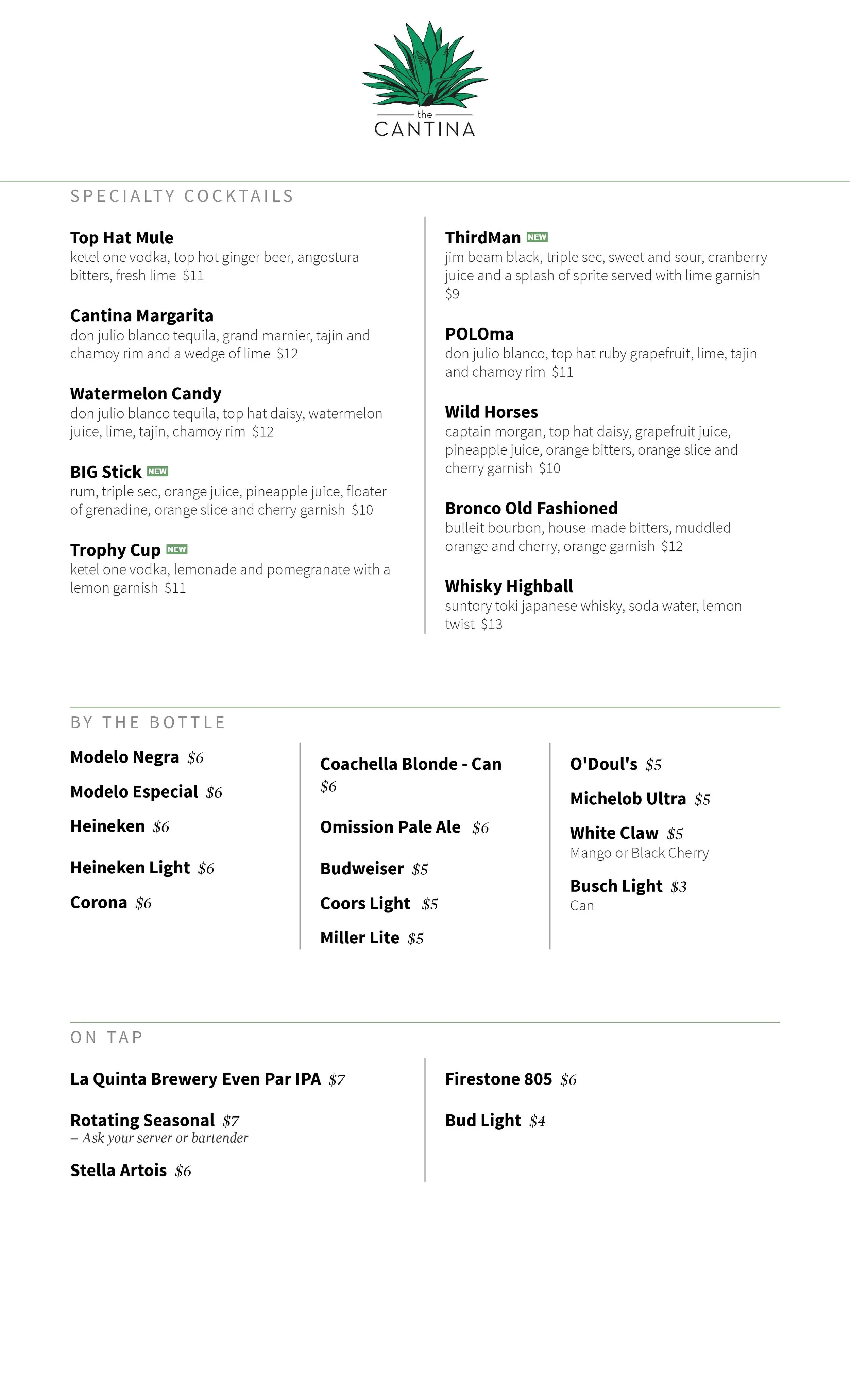 The Cantina will be offering a delicious To-Go Menu along with our House Specialty Cocktails!